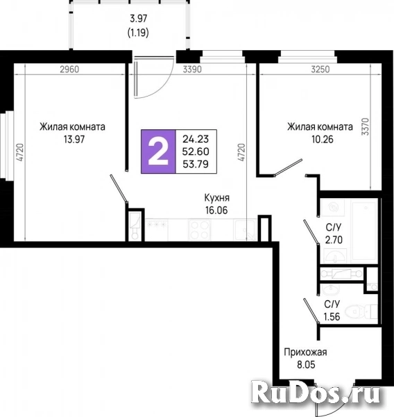 - Общая площадь (м2): 53.79